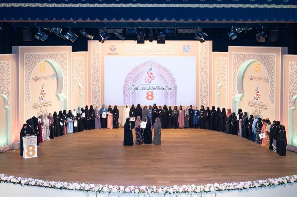 بعدها كرمت راعية الحفل معالي حصة بنت عيسى بوحميد مديرعام هيئة تنمية المجتمع بدبي ترافقها وسعادة نورة خليفة السويدي الفائزات بالمراكز العشر الاولى وجميع المشاركات في الدورة الثامنة للمسابقة ، حيث حققت متسابقة السويد صفية محمد طاهر المركز الأول ، وحققت المركز الثاني المتسابقة خديجة سيد المختار من موريتانيا ، وحصلت المتسابقة فاتي حسن راشد من كينيا على المركز الثالث، وحققت كل من المتسابقة مريم حبيب من نيجيريا والمتسابقة أفنان رشاد علي سالم من اليمن المركز الرابع مكرر ، والمركز السادس كان من نصيب المتسابقة أسماء يونس إبراهيم الباز من مصر ، وحققت المركز السابع المتسابقة أسماء بنت عبد الرزاق شلبي من تونس ، أما المركز الثامن فكان من نصيب المتسابقة زهرا انصاري من ايران ، والمتسابقة بوتري أمينة بنت محمد حنيف من ماليزيا حصلت على المركز التاسع ، وحققت كل من المتسابقة منيه أحمد الصغير حسن القاضي من ليبيا المركز العاشر مكرر مع المتسابقة عائشة بلال جاخورة من جنوب أفريقيا.