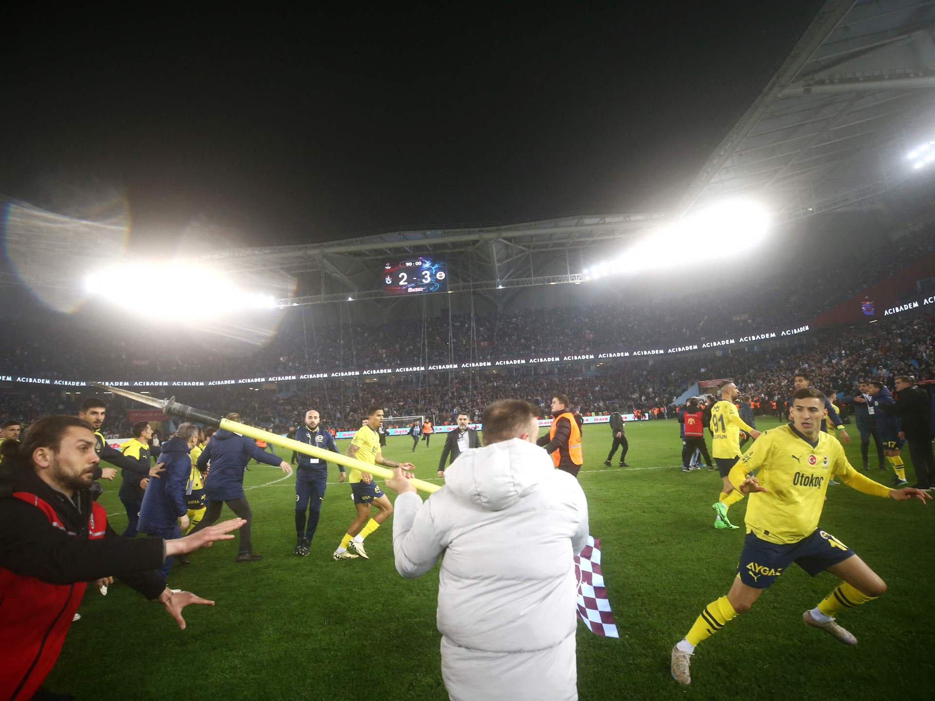 الرئيسية » جماهير لطرابزون سبور تجتاح الملعب وتعتدي على لاعبي فنربخشة في الدوري التركي