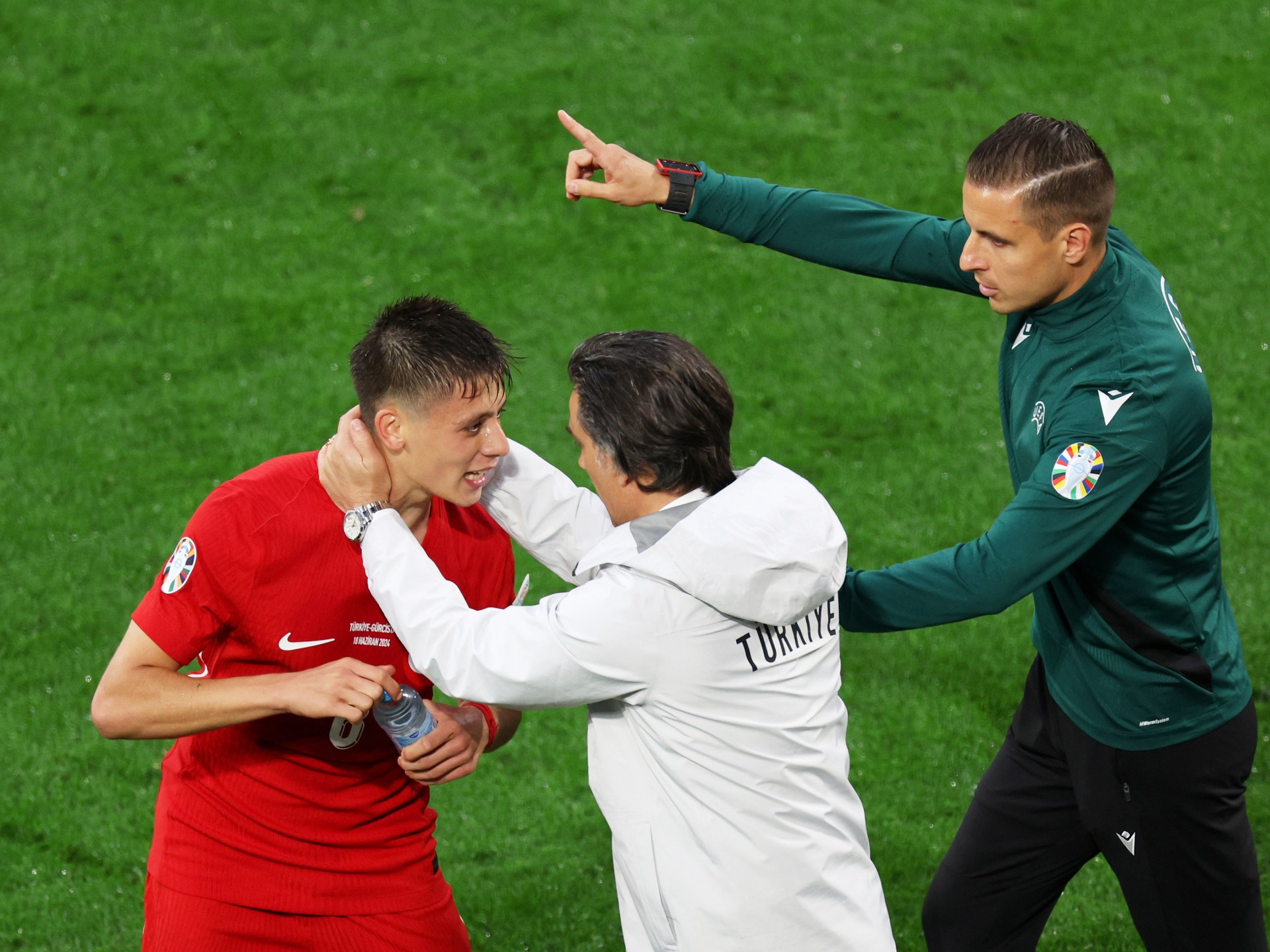 وانتشر على المنصات، أمس الأحد، مقطع مصور من تدريبات منتخب تركيا استعدادا للمواجهة الحاسمة للفريق في دور المجموعات أمام التشيك بعد غد الأربعاء، ظهر فيه المدرب مونتيلا وهو يأخذ قميص التدريبات من غولر ويبعده عن التدريبات الجماعية، في لقطة فسرها البعض بـ”قلة الاحترام” للاعب، فيما رأى آخرون أن القرار جاء من الإيطالي كإجراء احترازي، خوفا من تعرض التركي للإصابة.