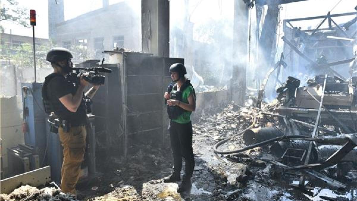 ونشرت صورا تُظهر دخانا يتصاعد من عربة مدمرة وحطاما بجانب خطوط السكك الحديدية ومستودعا تطايرت نوافذه.