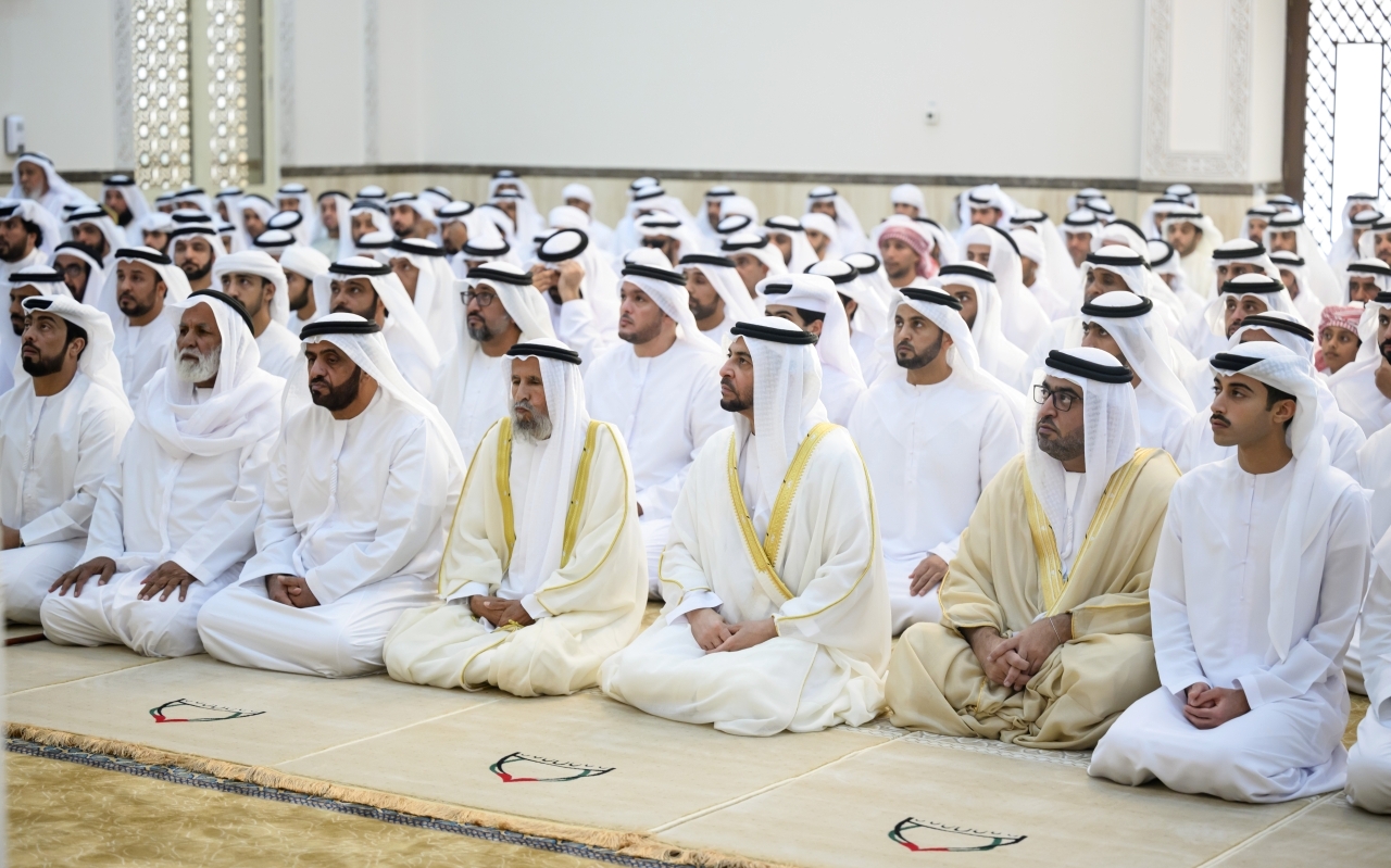 الرئيسية » حمدان بن زايد يؤدي صلاة العيد في مسجد قصر مزيرعة ويستقبل المهنئين