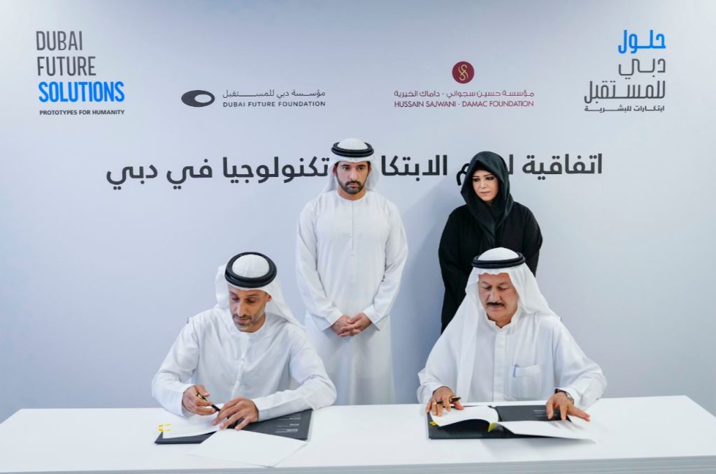 وشهد سمو الشيخ حمدان بن محمد بن راشد آل مكتوم، توقيع اتفاقية تعاون بين مؤسسة دبي للمستقبل ومؤسسة “حسين سجواني – داماك الخيرية” لتكون شريكاً استراتيجياً لهذه المبادرة عبر تخصيصها لـ 100 مليون درهم، حيث وقع الاتفاقية سعادة خلفان جمعة بلهول الرئيس التنفيذي لمؤسسة دبي للمستقبل، وحسين سجواني مؤسس ورئيس مجلس إدارة مجموعة “داماك”.