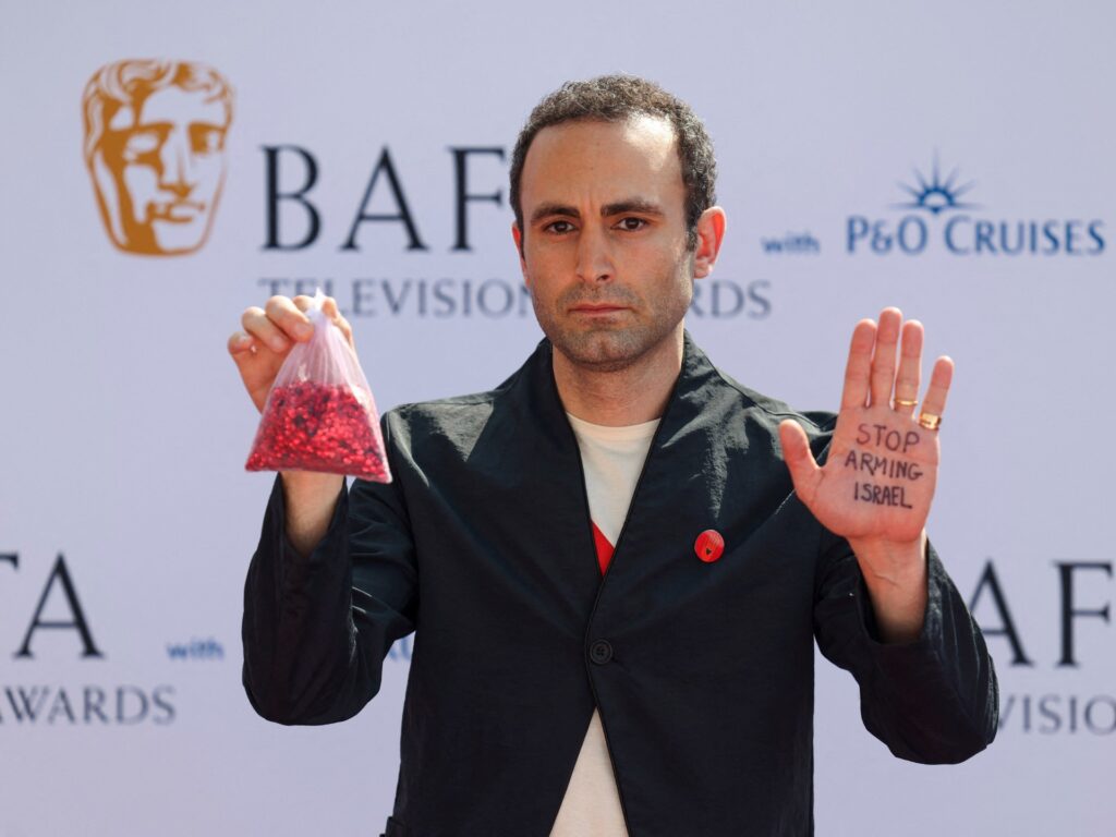 STOP ARMING ISRAEL#Artists4Ceasefire#AllEyesOnRafah#PermanentCeasefireNOW#BAFTATVAwards pic.twitter.com/fhVvDCQhnJ