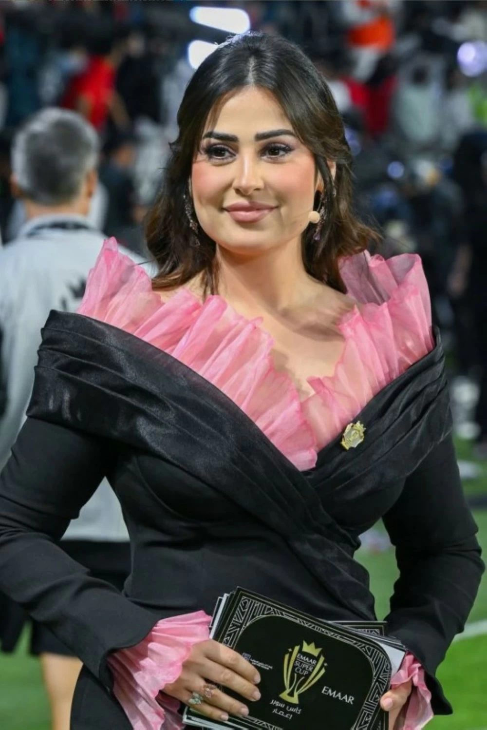 الفستان الأسود الذي اختارته رؤى الصبان كان من أبرز عناصر الإطلالة، حيث يعتبر اللون الأسود رمزًا للأناقة والرقي. إضافة الكشكشة الوردية الناعمة أعطت الفستان لمسة أنثوية رقيقة، وكسرت حدة اللون الأسود بأسلوب متوازن. هذا التناغم بين اللونين يعكس ذوق رؤى الرفيع وقدرتها على تنسيق الألوان ببراعة.