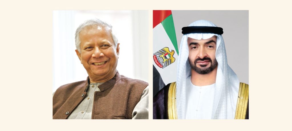 هنأ صاحب السمو الشيخ محمد بن زايد آل نهيان رئيس الدولة “حفظه الله” اليوم – خلال اتصال هاتفي – معالي البروفيسور محمد يونس بمناسبة توليه مهامه الجديدة رئيساً للحكومة المؤقتة في جمهورية بنغلاديش الشعبية.