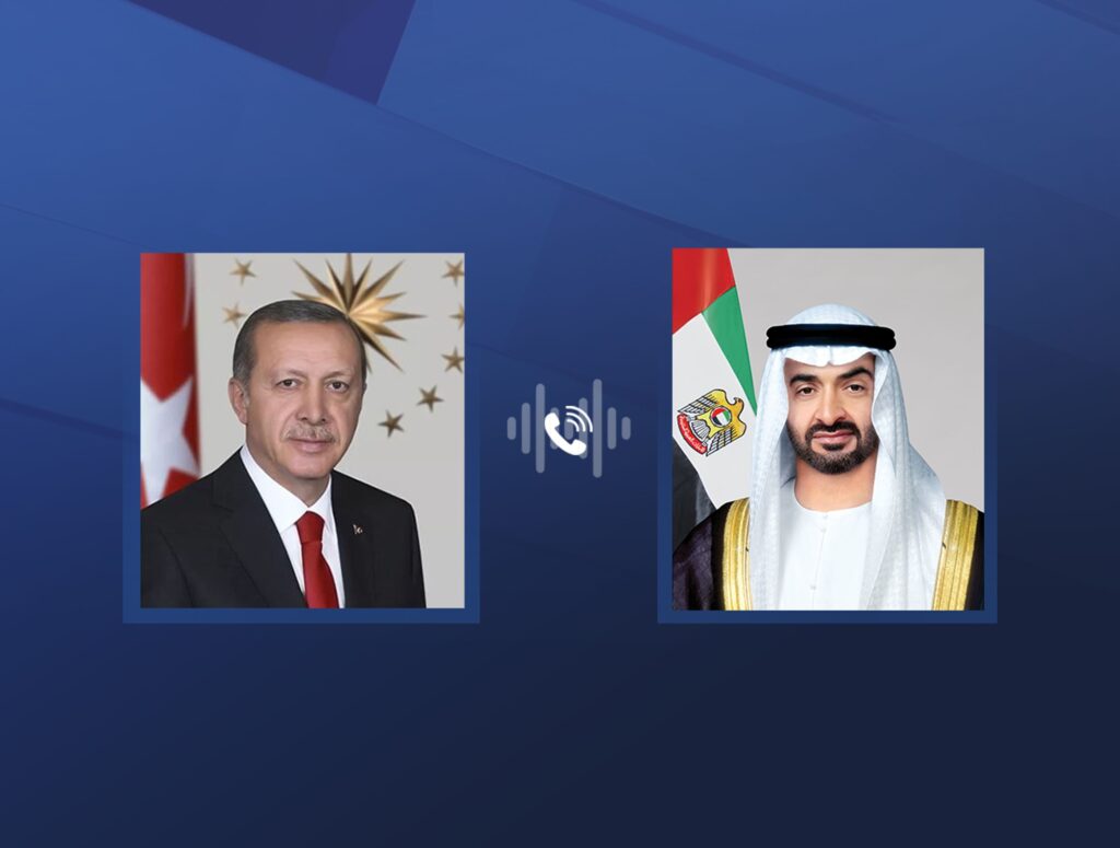 رئيس الدولة يتلقى اتصالاً هاتفياً من الرئيس التركي أعرب خلاله عن تمنياته السلامة للإمارات وشعبها
