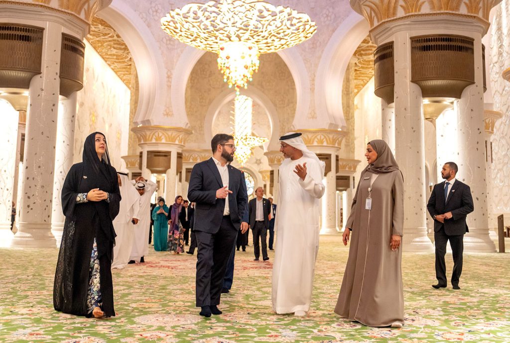 زار فخامة غابرييل بوريك فونت رئيس جمهورية تشيلي، جامع الشيخ زايد الكبير في أبوظبي، يرافقه معالي ريم بنت إبراهيم الهاشمي وزيرة دولة لشؤون التعاون الدولي، وسعادة محمد سعيد النيادي سفير الدولة لدى تشيلي وعدد من كبار المسؤولين في جمهورية تشيلي والوفد المرافق، وذلك في إطار زيارته الرسمية للدولة.