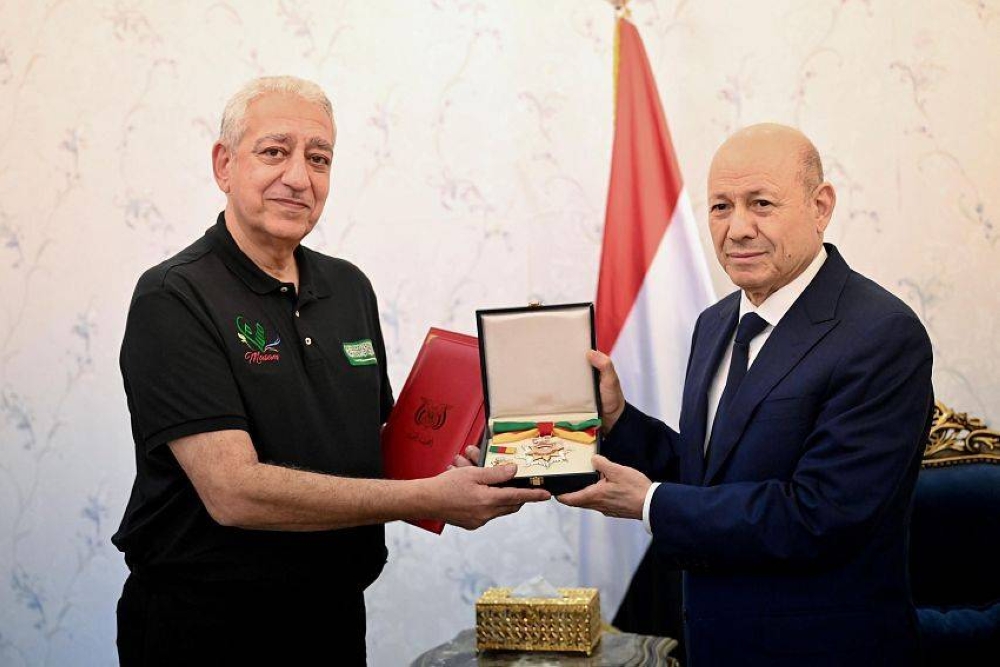 رئيس مجلس القيادة الرئاسي اليمني يقلد مشروع «مسام» وسام الشجاعة