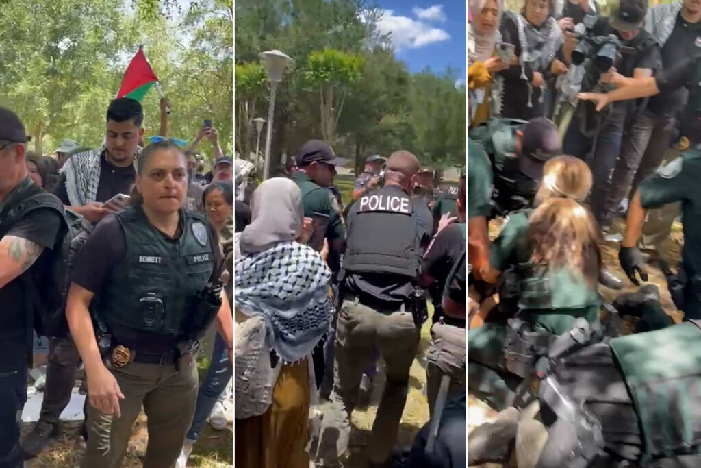 وفي المقابل، اعتقل صباح أمس عدد من الطلاب المحتجين بجامعة فلوريدا، التي أصدرت بيانا جاء فيه “جامعة فلوريدا ليست دار رعاية نهارية، ونحن لا نتعامل مع المتظاهرين مثل الأطفال، لقد عرفوا القواعد، وانتهكوها، وسيواجهون العواقب”.