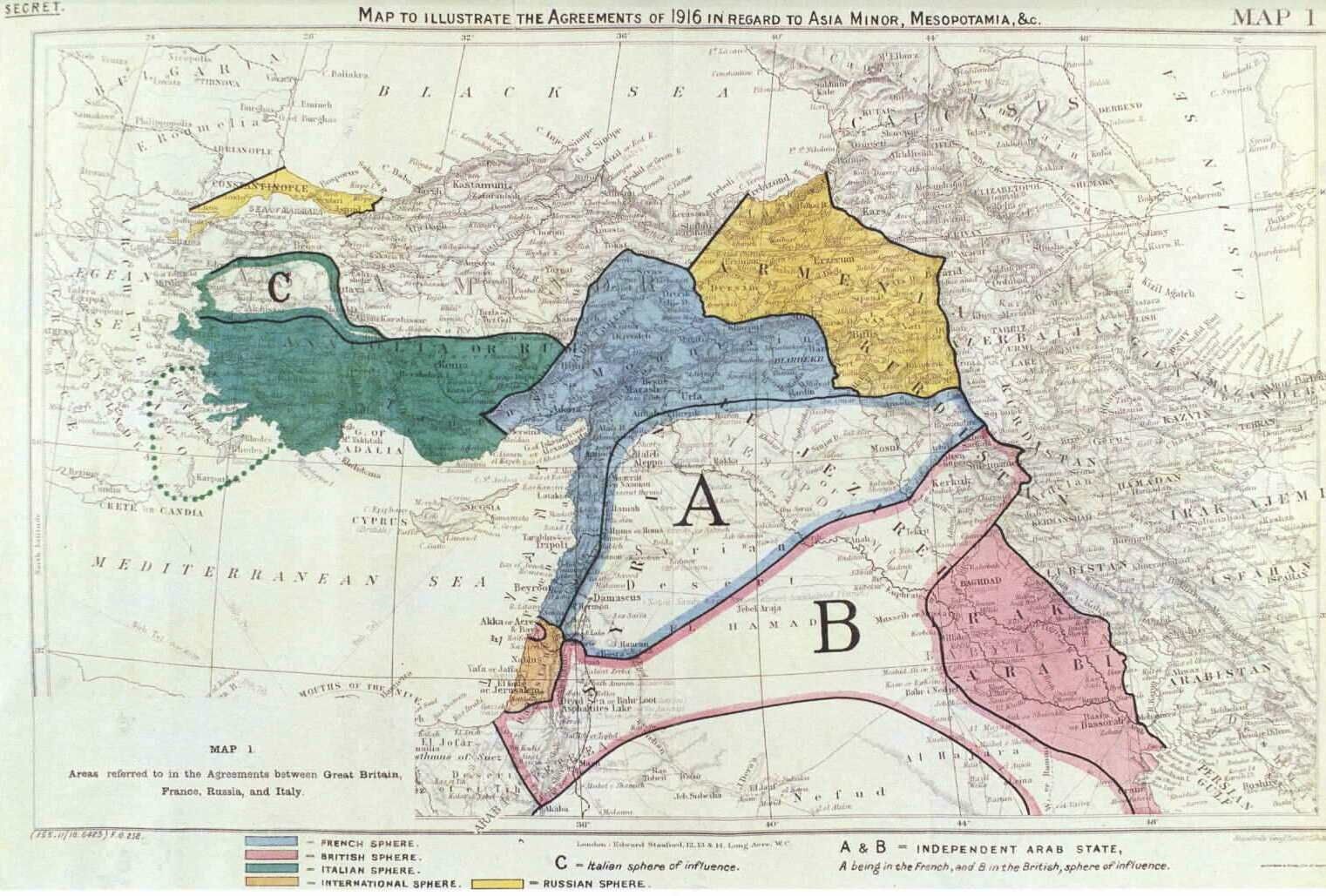 في 16 مايو /أيار 1916 توصلت فرنسا والمملكة المتحدة إلى اتفاق سري باركته روسيا القيصرية من أجل اقتسام منطقة ما يسمى بالهلال الخصيب، وذلك بعد انحسار قوة الإمبراطورية العثمانية التي اختارت التحالف مع الإمبراطورية النمساوية المجرية إبان الحرب العالمية الأولى.