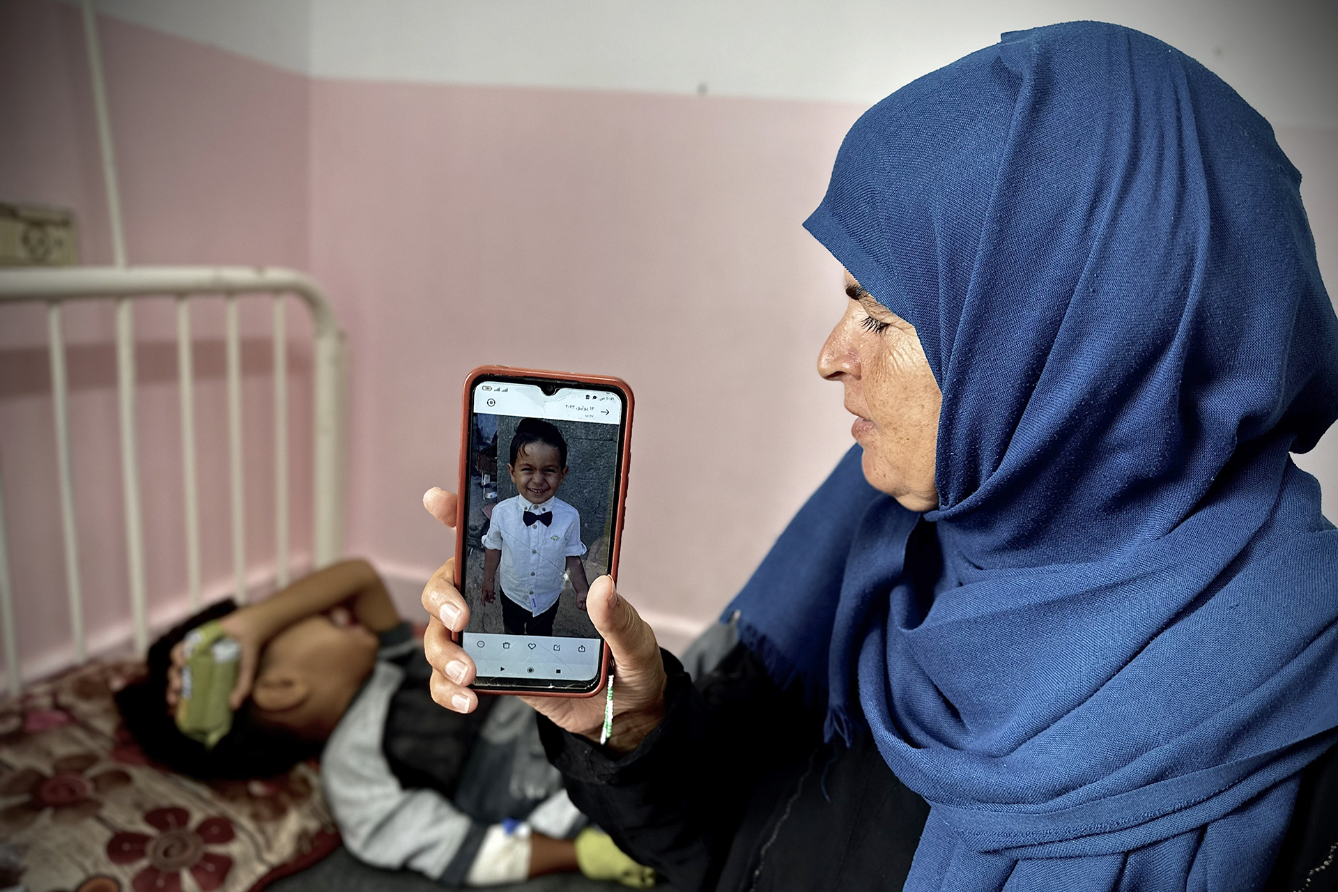 وداخل المستشفى، ترافق الطفل محمد جدته المسنة صبحية عطية، تتلمس رأسه وتدعو له بالشفاء، وتأمل أن يعود إلى حالته السابقة شغوفا ومبتهجا.