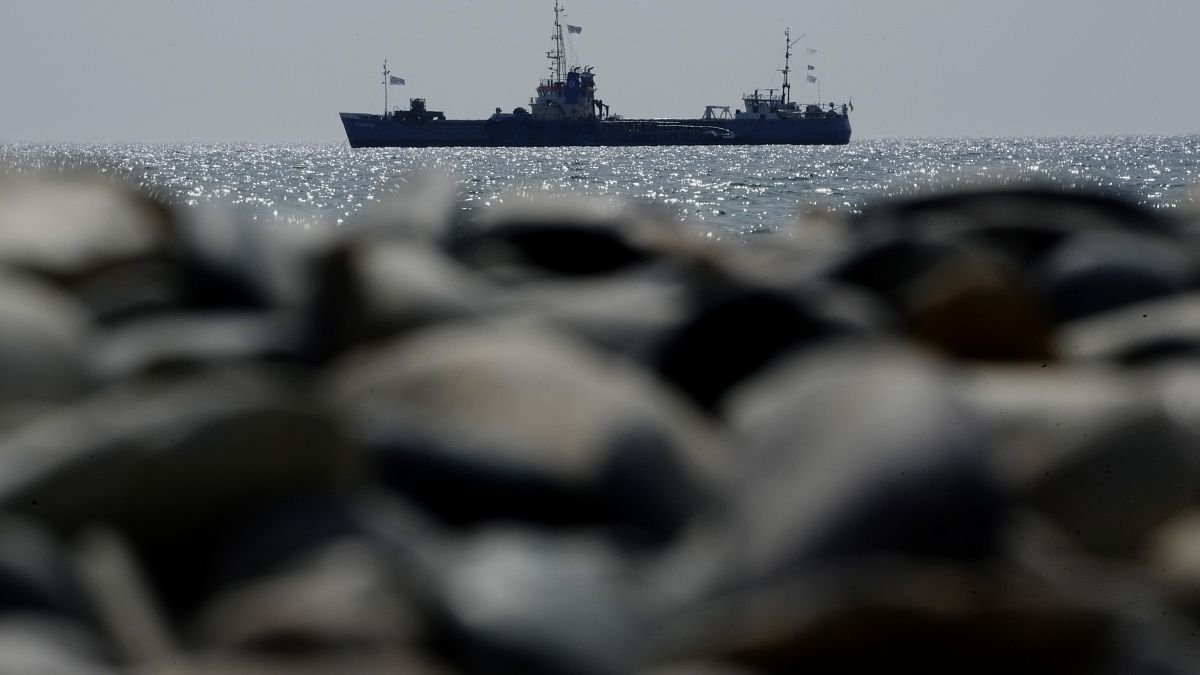رست سفينة محملة بـ 240 طنا من الأغذية المعلبة والمخصصة لسكان قطاع غزة، في المياه خارج ميناء لارنكا القبرصي يوم السبت .
