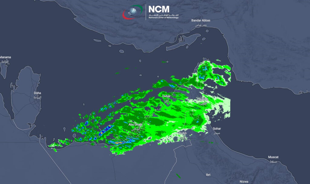 مع استمرار تدفّق السحب الركامية اليوم على مناطق متفرقة، سقطت أمطار خفيفة ومتوسطة على المناطق الشمالية والشرقية والساحلية، وذلك لتأثّر الدولة بامتداد منخفض جوي سطحي قادم من الجنوب الغربي مصحوباً بامتداد منخفض في طبقات الجو العليا مع تيار هوائي من الغرب أدي إلى تكاثر السحب الممطرة على أغلب مناطق الدولة.