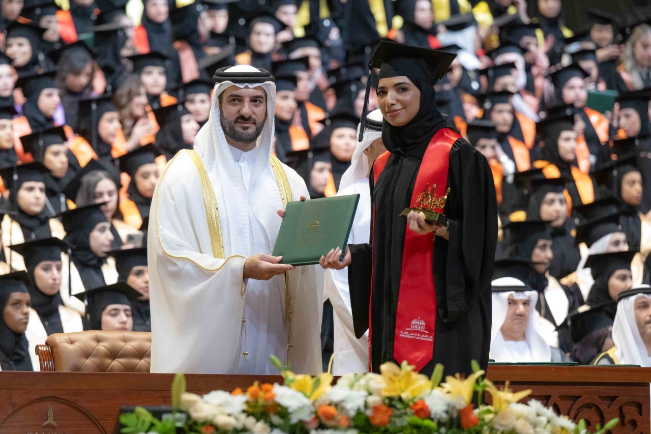 شهد سمو الشيخ سلطان بن أحمد بن سلطان القاسمي، نائب حاكم الشارقة، رئيس جامعة الشارقة، صباح أمس، حفل تخريج طالبات درجة البكالوريوس بجامعة الشارقة البالغ عددهن 533 خريجة، وذلك في قاعة المدينة الجامعية.