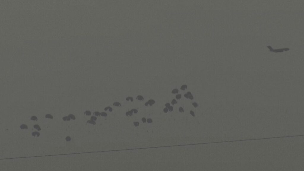 استمرت عمليات الإنزال الجوي للمساعدات الغذائية فوق قطاع غزة صباح يوم السبت، وسط تصاعد أعمدة الدخان، في مؤشر واضح على استمرار الحرب بين إسرائيل وحماس.