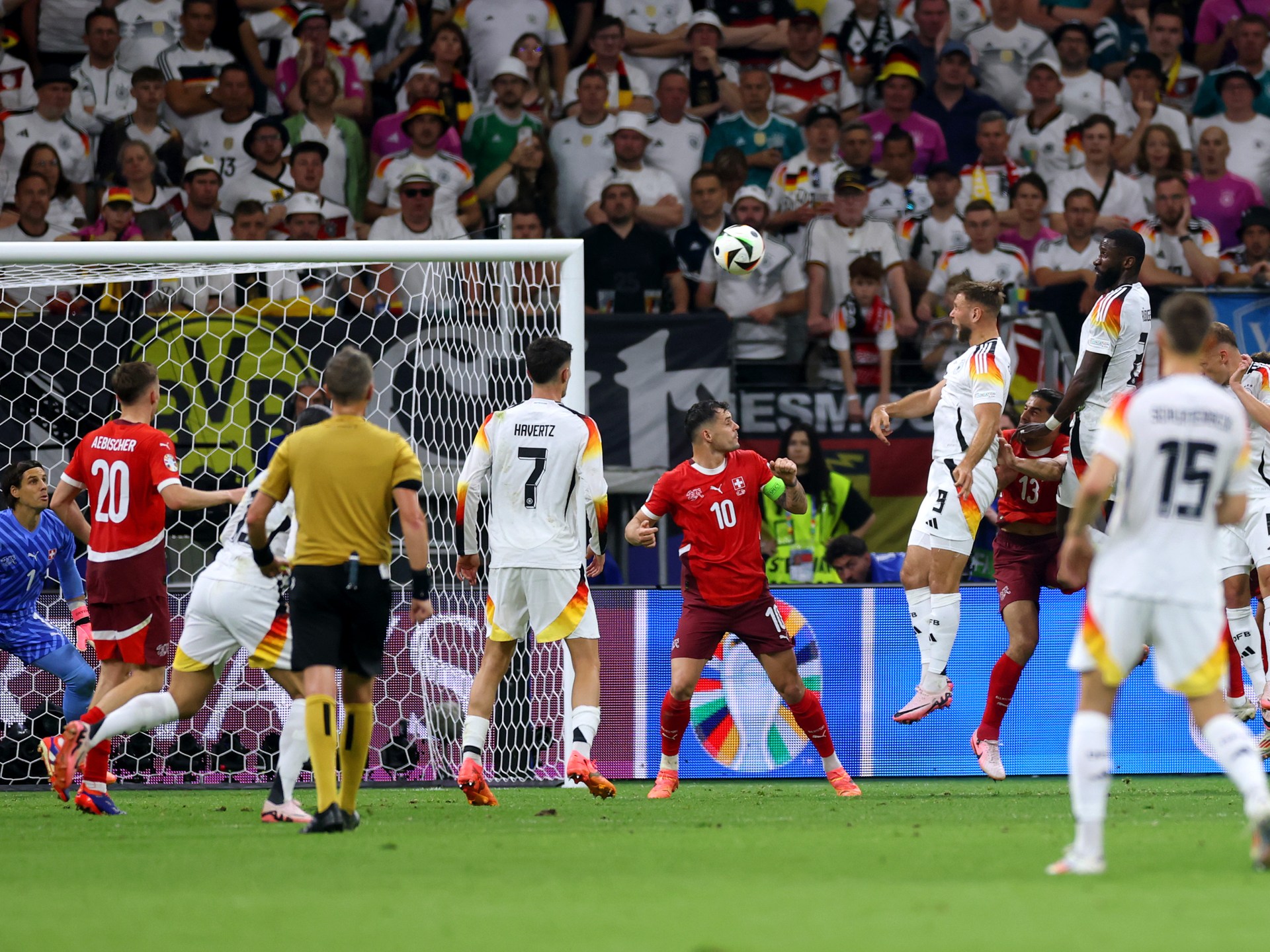 وفي الدقائق الأولى، ظنت ألمانيا أنها تقدمت في النتيجة بتسديدة قوية من روبرت أندريش من خارج منطقة الجزاء بعدما أبعد الدفاع عرضية لعبها توني كروس من الجانب الأيسر وسط اعتراض من لاعبي سويسرا الذين طالبوا احتساب مخالفة ضد جمال موسيالا.