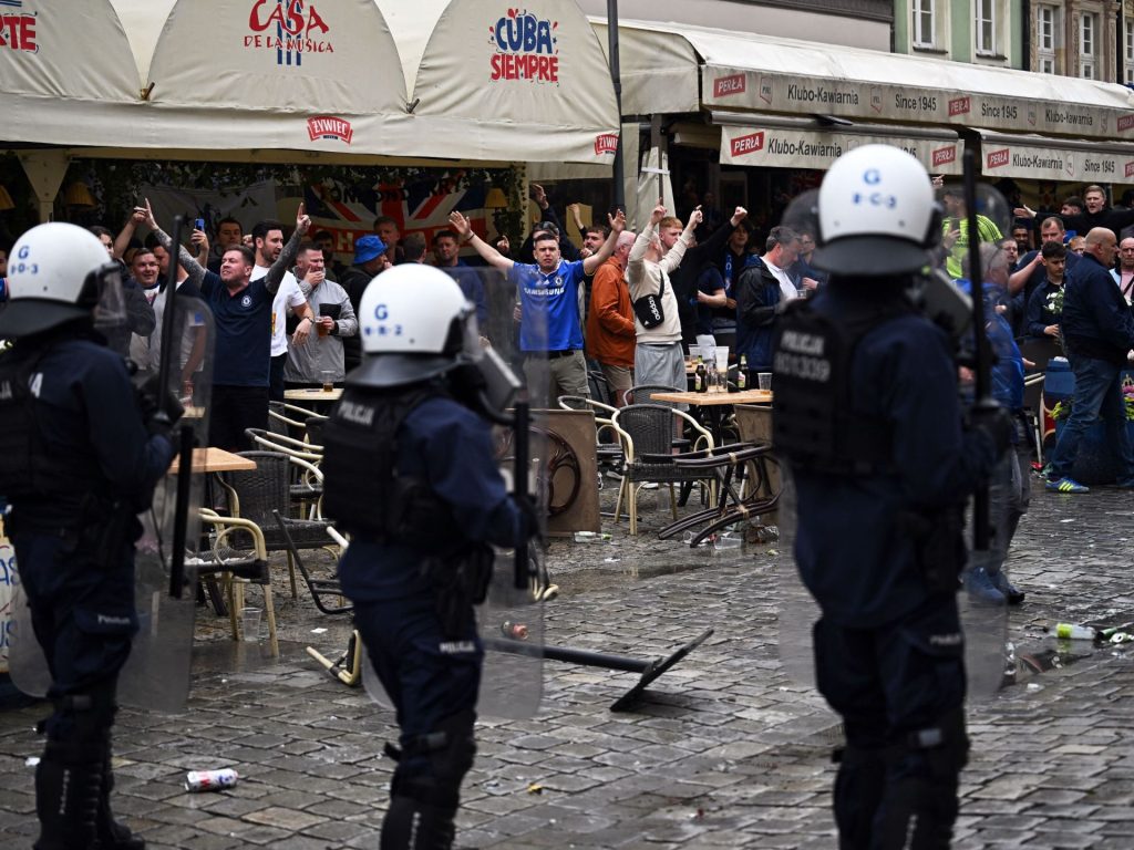 واضطرت الشرطة البولندية إلى التدخل بعد استهدافها بالمقذوفات، وقامت باعتقالات بين الجماهير الإسبانية والإنجليزية.