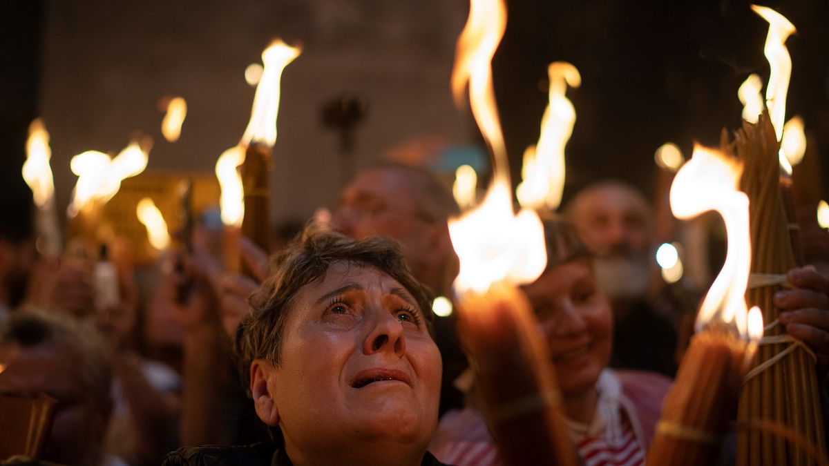 وقال عيسى عساسية، أحد المصلين الذين حضروا المراسم في الكنيسة: “هذا العام حزين للغاية ولكني أتمنى مع نور النار المقدسة من القدس أن يعم السلام في جميع أنحاء العالم”.