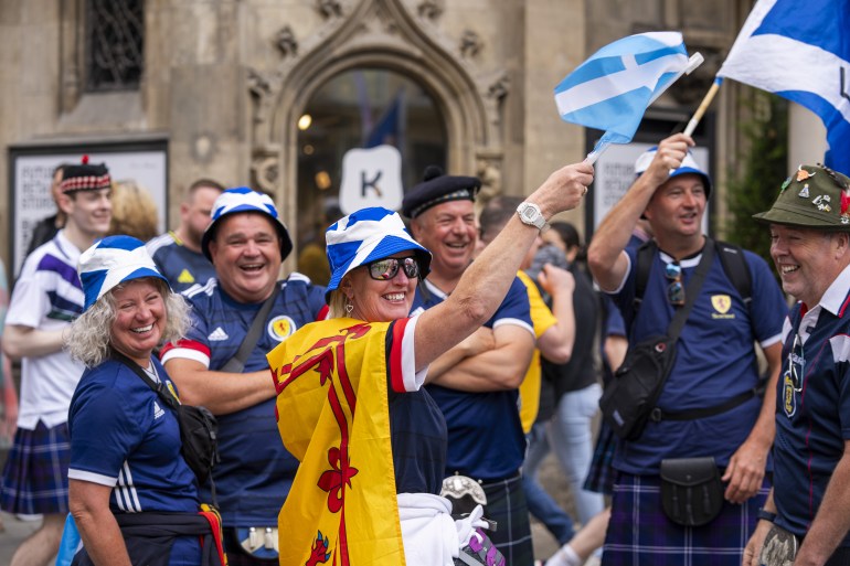 وأظهرت مقاطع فيديو، تم نشرها على وسائل التواصل الاجتماعي، أمس الخميس، مشجعين أسكتلنديين وهم يشربون الجعة في الحانات والمطاعم في مارينبلاتز، وقامت فرقة الغليون الأسكتلندية بتقديم عرض فني، كما انتشر مزمار القربة في جميع أنحاء الساحة.