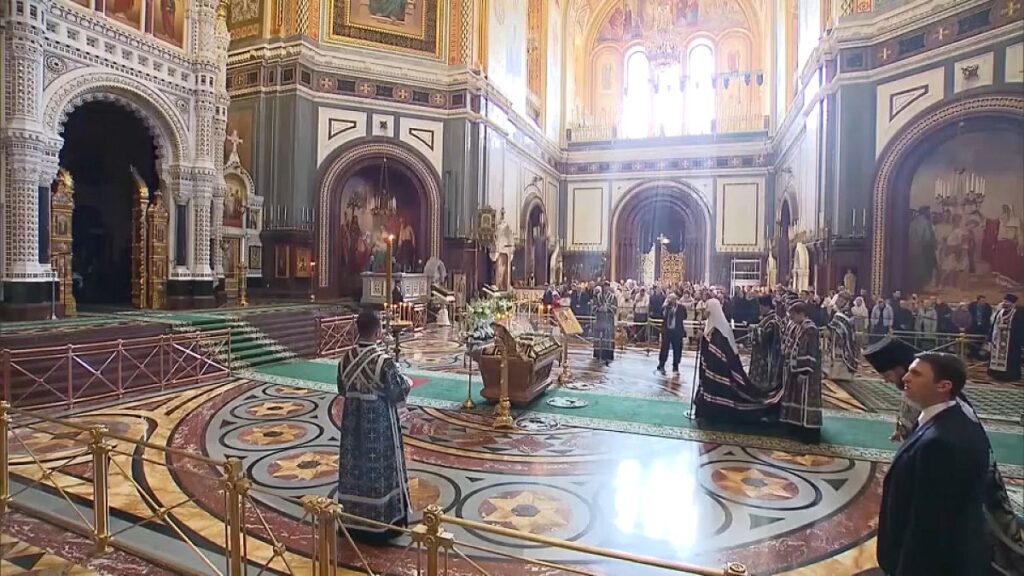 قاد البطريرك كيريل احتفالات الكنيسة الأرثوذوكسية الروسية بالسبت المقدس قبيل عيد الفصح الأرثوذكسي في كاتدرائية المسيح المخلص في موسكو.