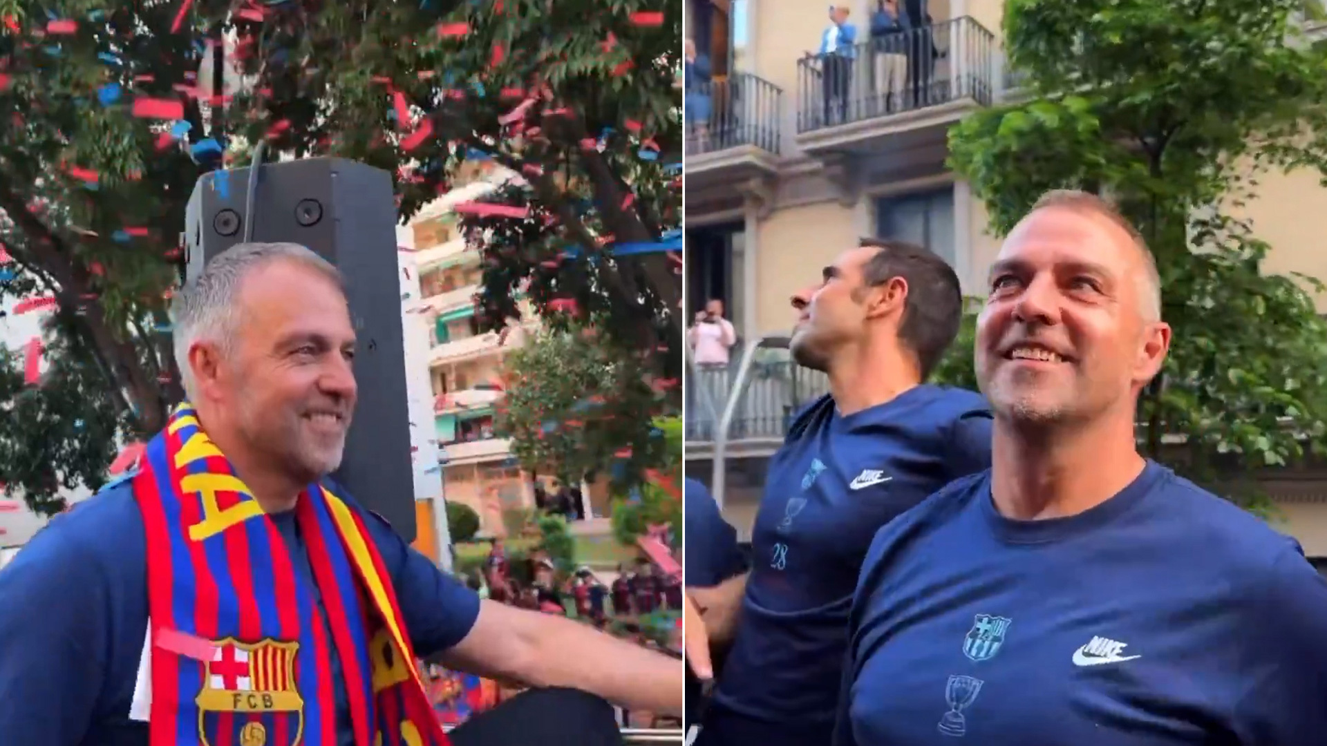 وبعد قيادته برشلونة للتتويج بالثلاثية المحلية في إسبانيا (كأس السوبر وكأس الملك والدوري)، خطف فليك الأضواء خلال احتفالات الفريق في أثناء وقوفه على متن الحافلة التي طافت شوارع برشلونة.