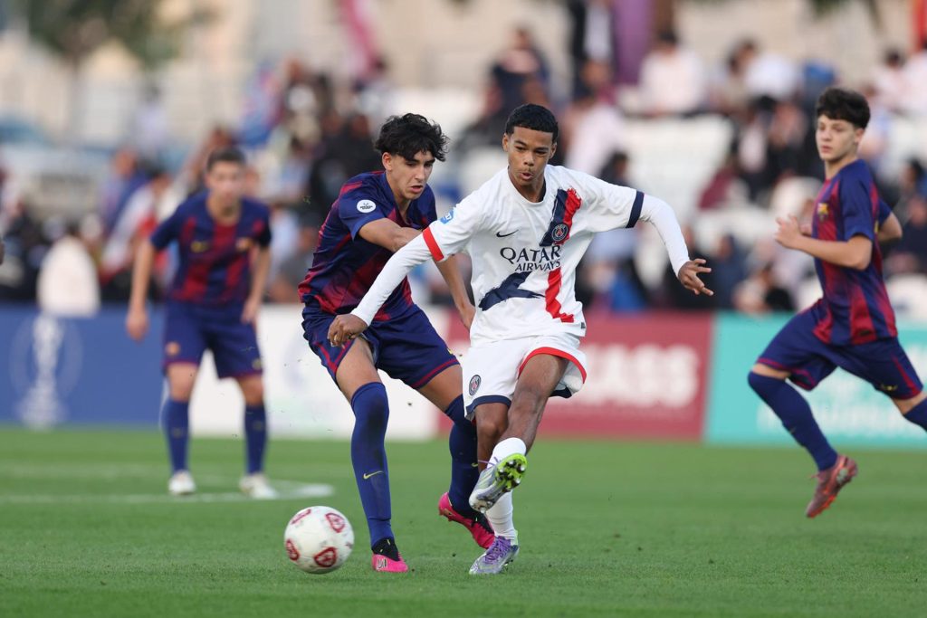 أقيمت المباراة في الدوحة، قطر، وشهدت مشاركة نخبة من اللاعبين الشباب الواعدين من كلا الناديين. سجل أهداف باريس سان جيرمان كل من جوهان عبدون وإيوان بولتر وماولا نياكاتي، بينما أحرز أهداف برشلونة أرتيم ريباك وأليكس فينتاخا وروسلان هيرناندو، الذي سجل هدف التعادل القاتل في الدقائق الأخيرة. هذه النتيجة تضع كلا الفريقين في موقف متساوٍ في بداية مشوارهما في البطولة.