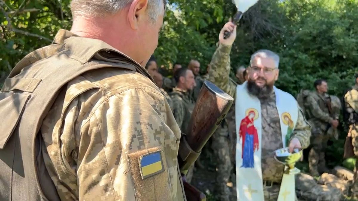 وقام الكاهن إيفان، وهو قسيس باللواء الميكانيكي 72 في الجيش الأوكراني، بقيادة مراسم الاحتفال الديني ومباركة الجنود.
