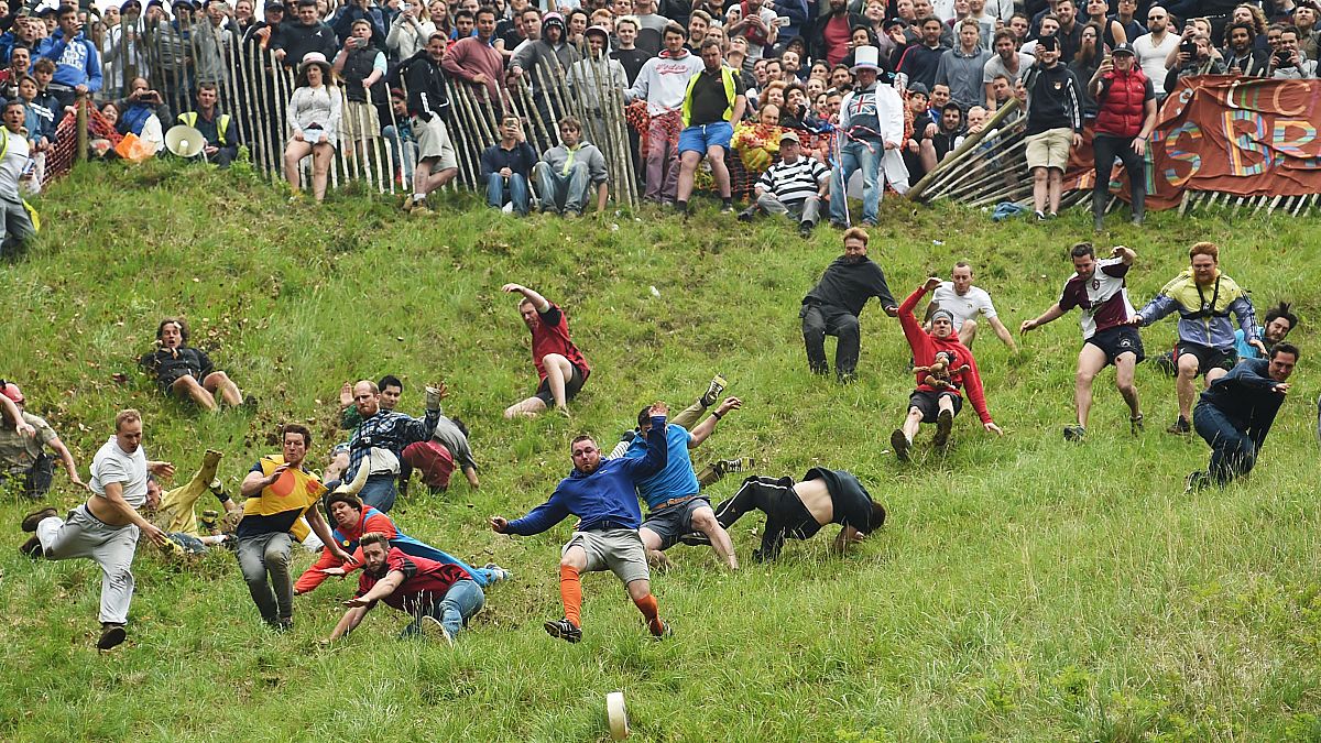 تبدو فكرة مهرجان “دحرجة الجبن” جنونية حيث تقام على تلة زلقة ويركض المتنافسون وراء عجلة سريعة ضخمة مصنوعة من جبن غلوستر قد يصل وزنها إلى 3 كيلوغرامات.