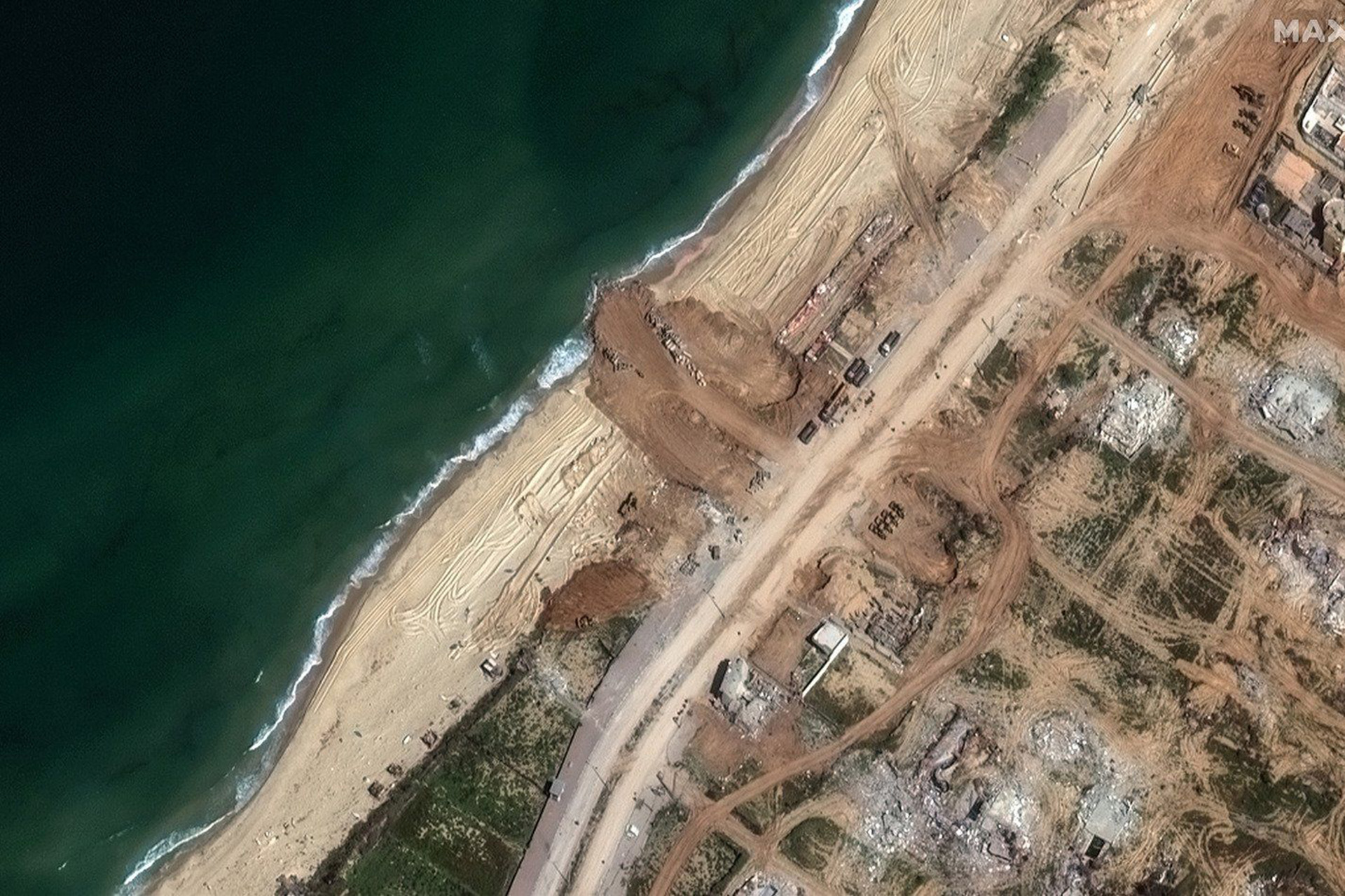 أظهرت صور التقطت عبر الأقمار الصناعية رصيفا قيد الإنشاء على شواطئ الساحل الجنوبي لمدينة غزة، وفق الإحداثيات التي نشرتها شركة “ماكسار” للتكنولوجيا.