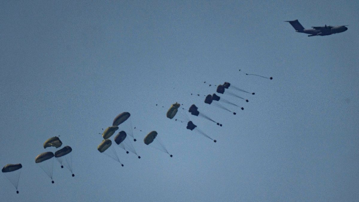تسقط إحدى الطائرات مساعدات إنسانية على قطاع غزة، وهي طريقة اتبعتها العديد من الدول منها الأردن والإمارات وفرنسا ومؤخرا، الولايات المتحدة الأمريكية.