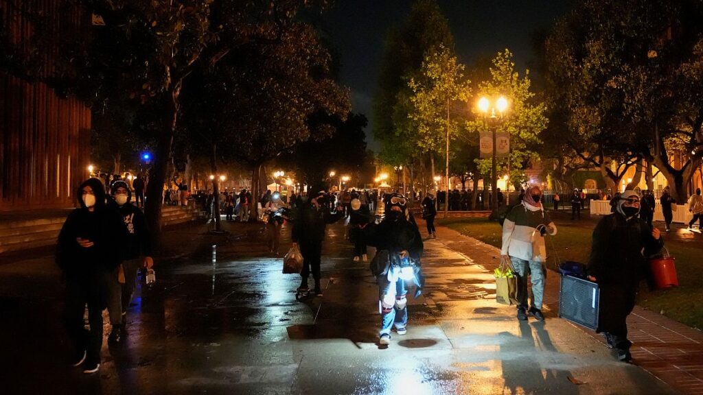 شاهد: طلاب بجامعة جنوب كاليفورنيا يغادرون اعتصام مناهض لإسرائيل بعد تهديدات الشرطة