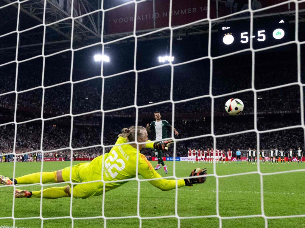 تألق حارس مرمى أياكس أمستردام الهولندي المخضرم ريمكو باسفير (40 عاما) بتصديه لـ5 ركلات ترجيحية ونجاحه في ترجمة واحدة خلال فوز فريقه على باناثينايكوس اليوناني 13-12؛ في مواجهة سُددت فيها 34 ركلة ترجيحية خلال الدور الثالث من التصفيات التأهيلية لمسابقة الدوري الأوروبي لكرة القدم.