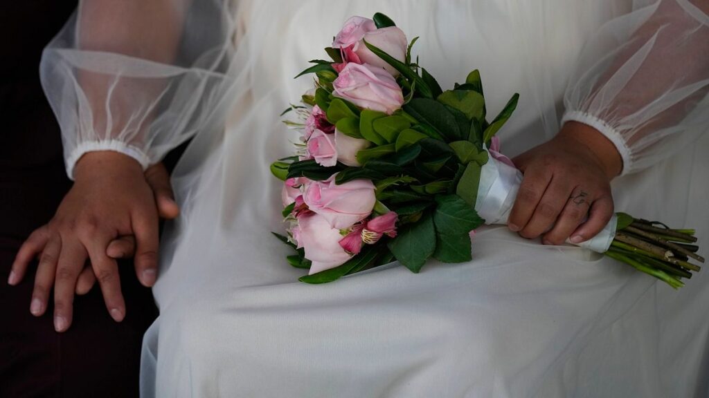 ومن بين المشاركين في الحفل أليخاندرا فالنسيا، إحدى العرائس، التي جاءت مع خطيبها يائير لعقد قرانهما بهذه الطريقة غير المعتادة.