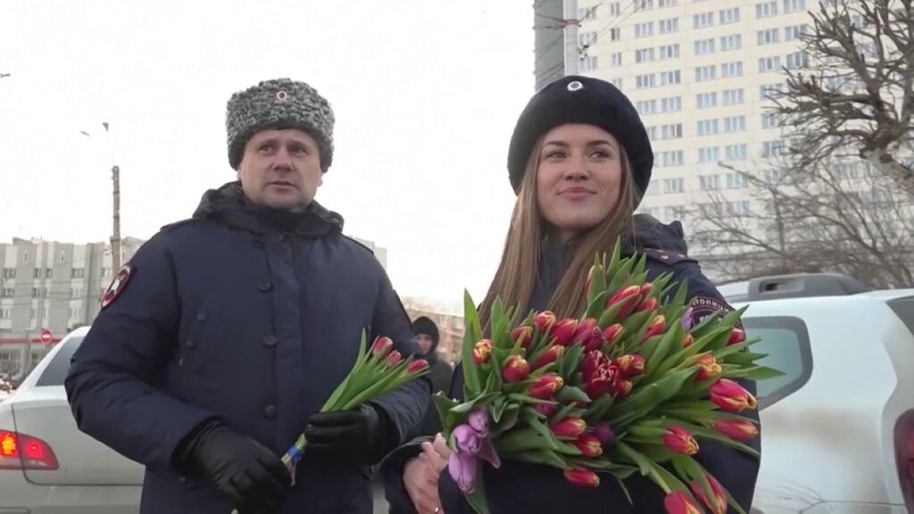 وفي نوفوسيبيرسك، فاجأت شرطة النقل السائقات بإيقاف سياراتهن وتسليمهن الزهور بدلاً من الغرامات.