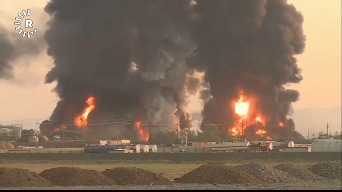 ادلع حريق هائل في منشأة تخزين الأسفلت لمصفاة نفط تقع على طريق أربيل-كوير في وقت متأخر من يوم الأربعاء.