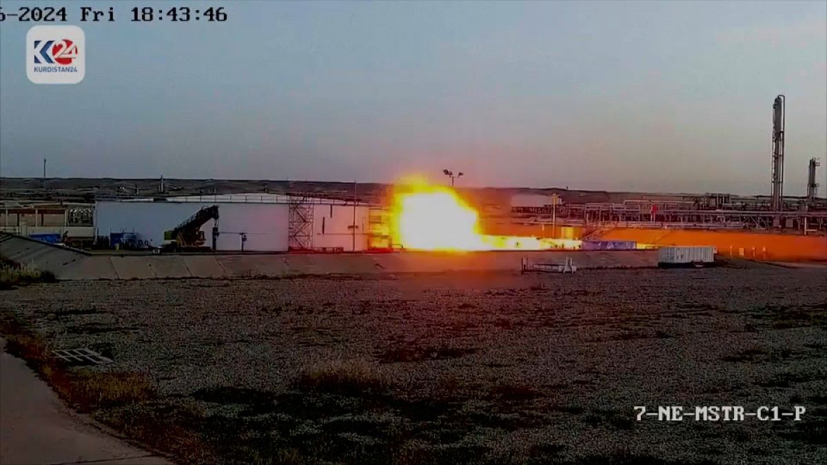 ووثق مقطع فيديو التقطته كاميرات المراقبة لحظات وقوع الهجوم بطائرة مسيرة على حقل خور مور للغاز في شمال العراق.