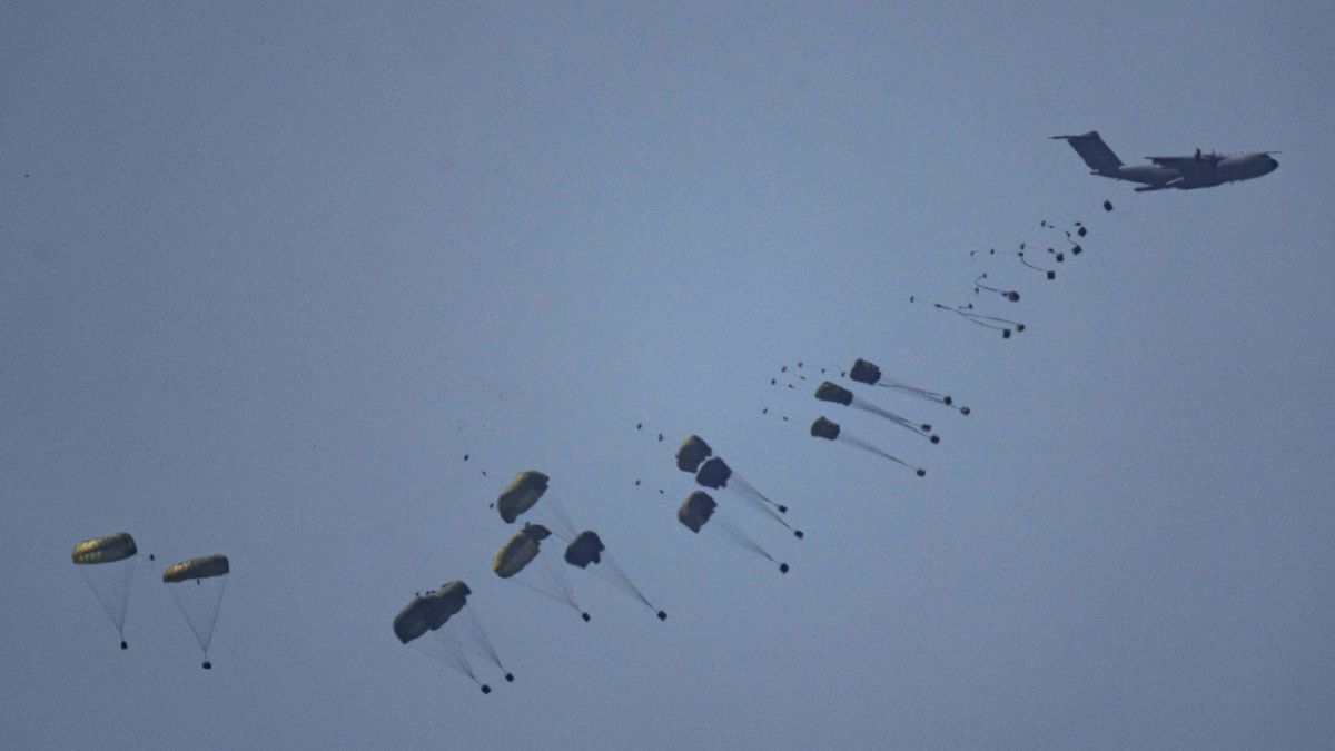 شاهد: وصول المساعدات إلى غزة عبر المظلات