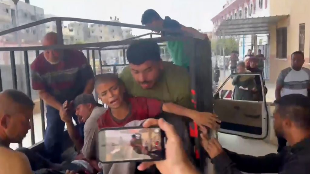 ونقل ضحايا الغارة إلى مستشفى مجمع ناصر الطبي. وعبّر أحد المواطنين عن غضبه وغضب الغزيين من الوضع الذي يعيشونه، وقال “أنا تعتبت.. بدنا حل”.