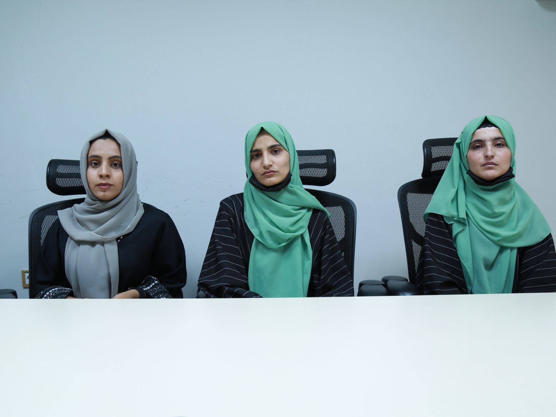 الصور المرفقة وهي خاصة لطالبات أفغانيات خلال الإدلاء بشهاداتهن حول حرمانهن من التعليم.