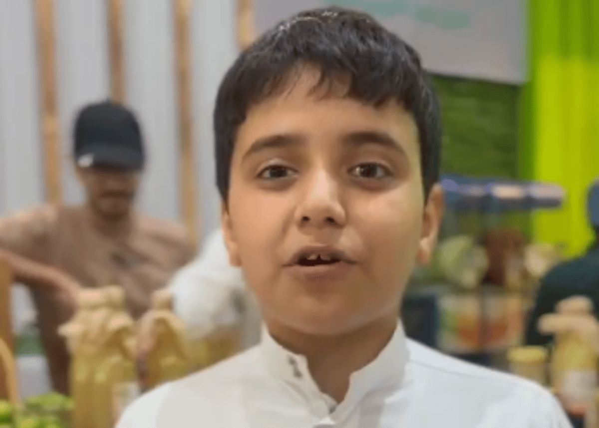 طفل يبهر الحضور بمعرض اللومي الحساوي بتقديم المنتجات بالإنجليزية