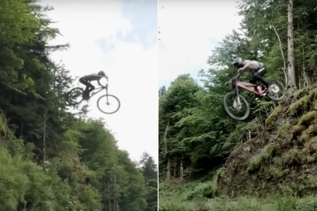 🇫🇷 L’impressionnant saut du cycliste Valentin Anouilh au-dessus du peloton du Tour de France lors de la 11ᵉ étape au Falgoux ! Un saut de 11 mètres de haut et de 8 mètres de long ! 🚲 (La Montagne)