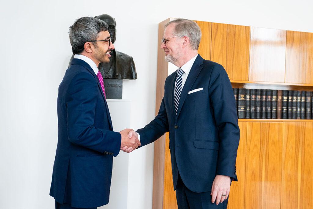 التقى سمو الشيخ عبدالله بن زايد آل نهيان وزير الخارجية بيتر فيالا رئيس وزراء جمهورية التشيك وذلك في إطار زيارة العمل التي يقوم بها سموه إلى براغ.
