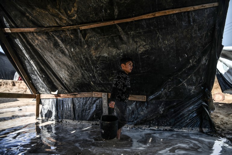 وتسببت الأمطار الغزيرة والرياح الشديدة التي هبّت على المناطق الشمالية من القطاع، والغربية من دير البلح وسط القطاع، ورفح ومنطقة المواصي في خان يونس جنوبا بغرق مئات الخيام، وتطاير أخرى تؤوي آلاف النازحين، الذين باتوا ليلتهم بالعراء في ظل البرد القارس وتحت الأمطار الغزيرة.