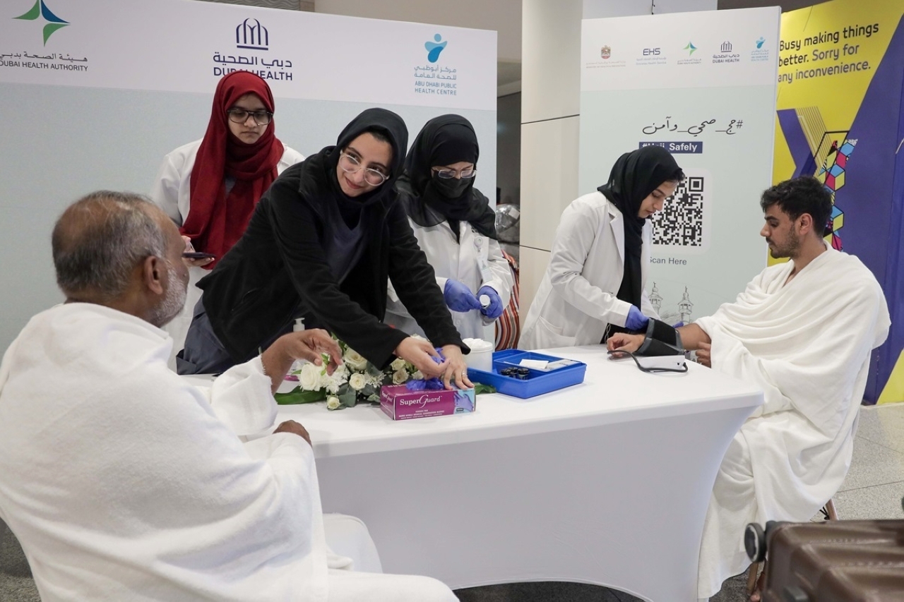 تقدم وزارة الصحة ووقاية المجتمع خدماتها إلى قوافل الحج في كل من مطار دبي الدولي ومطار الشارقة الدولي من خلال الفحوص الطبية المجانية والإرشادات الصحية الواجب اتخاذها أثناء السفر وخلال أداء مناسك الحج لضمان حج صحي وآمن، وذلك عبر فريق تثقيف صحي متخصص، بما يعكس التزام الوزارة برعاية صحة وسلامة الحجاج.