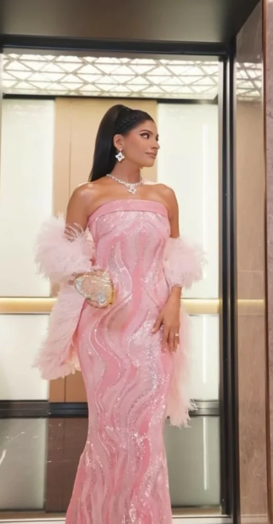 ولم تكتفِ بودي بذلك، بل أكملت اللوك بطقم ماسي فاخر، عزز من أناقتها وأضفى عليها بريقًا خاصًا. هذا التألق في اختيار المجوهرات يعتبر جزءًا أساسيًا من أسلوبها المتميز. إضافة إلى ذلك، يُلاحظ أن بودي تختار دائمًا الماركات العالمية المعروفة، مما يعزز من مكانتها كأيقونة للأناقة.