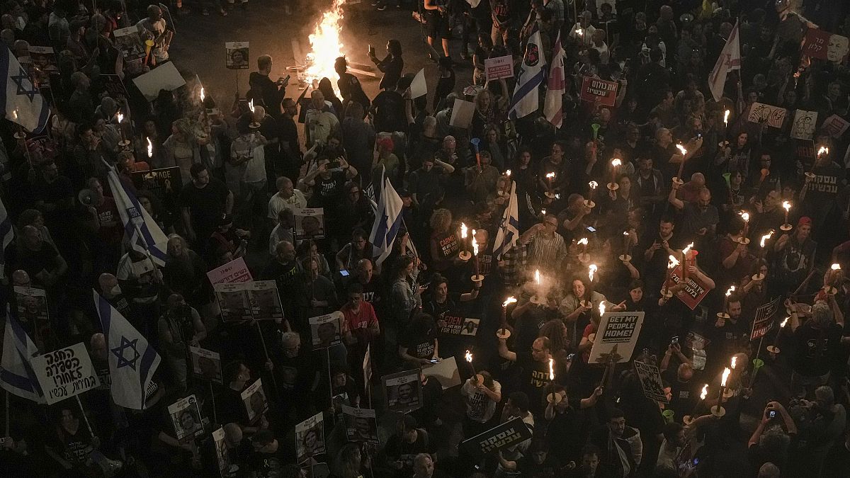 تجمع آلاف المتظاهرين أمام وزارة الدفاع بتل أبيب وطالبوا بالإطاحة بحكومة نتنياهو، وأغلقوا شوارع حيوية، ما أدى إلى حصول اشتباكات مع الشرطة. كما رفع المتظاهرون لافتات يطالبون فيها بعودة الأسرى المحتجزين لدى حركة حماس في قطاع غزة.