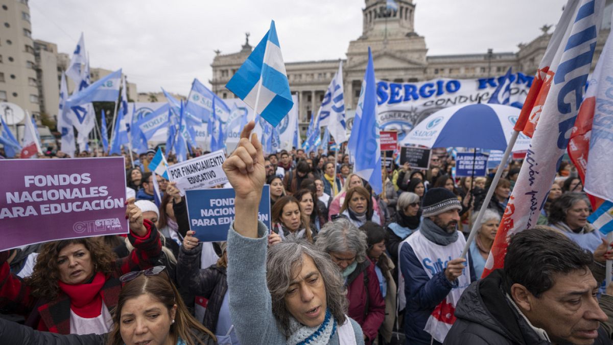 بدا السخط الاجتماعي في الأرجنتين واضحاً مرة أخرى، الخميس، حيث قام المعلمون بإضراب وطني يستمر لمدة 24 ساعة، للمطالبة بزيادة الرواتب وسط ارتفاع التضخم. وهذا هو الإضراب الثالث في قطاع التعليم منذ أن تولى الليبرالي المتطرف خافيير مايلي الرئاسة في كانون الأول/ ديسمبر. وتجمع عشرات المعلمين بالقرب من الكونغرس، وانضم إليهم نواب من جبهة اليسار يحملون لافتات لدعمهم.