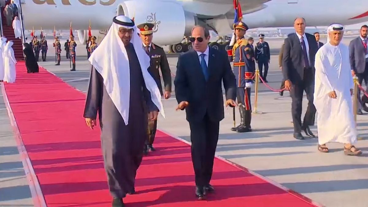 فيديو: السيسي وبن زايد يستعرضان في القاهرة سبل وقف إطلاق النار في غزة