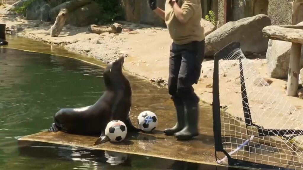تتوقع “هيلا”، أنثى أسد البحر في حديقة حيوان لايبزيغ، تعادل ألمانيا واسكتلندا في المباراة الافتتاحية لبطولة كرة القدم الأوروبية يوم الجمعة. وأنثى أسد البحر، التي تبلغ من العمر خمس سنوات، قامت بالتنبؤ بقيادة الأسكتلنديين بالتعادل في المباراة، لأن الكرتين استقرتا في المرمى بعد أن دفعتهما هيلا.