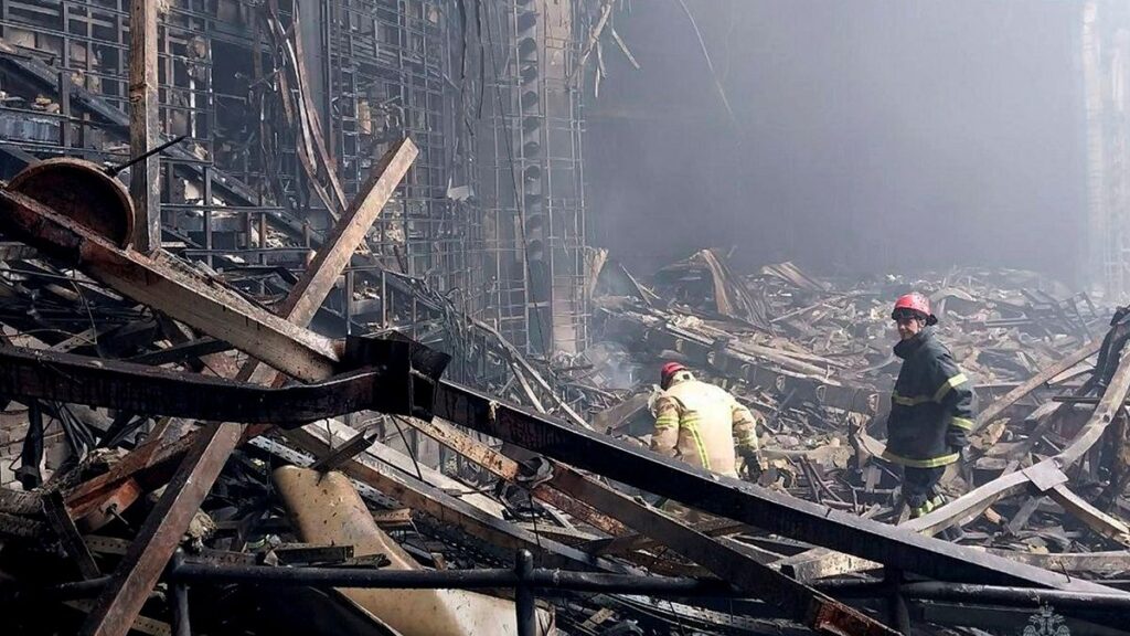 تمكنت فرق الإنقاذ الروسية من إخماد الحريق في قاعة مدينة كروكوس واستمرت في إزالة الأنقاض داخل المكان الذي تعرض لأضرار بالغة والذي كان موقع هجوم أدى إلى مقتل 133 شخصاً على الأقل.
